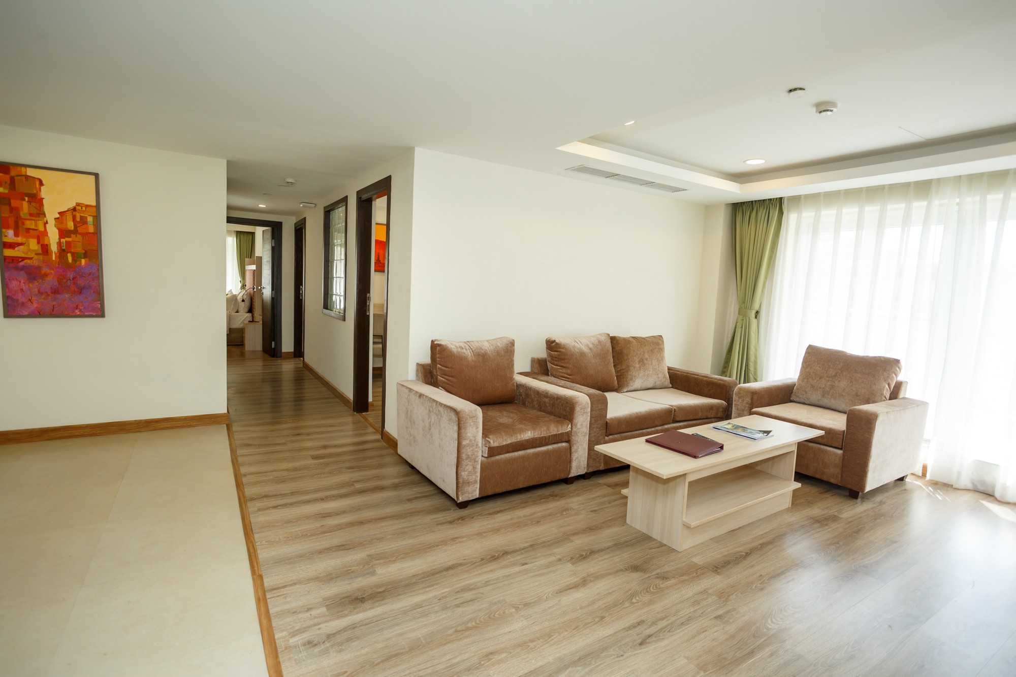 Guests who reserve the Apartment Suite enjoy 3 chic bedrooms with en suite bathrooms featuring triple vanities. Unwind in a plush bathrobe and slippers in the central living and dining area that has 3 bathrooms, and admire beautiful views from the private balcony.